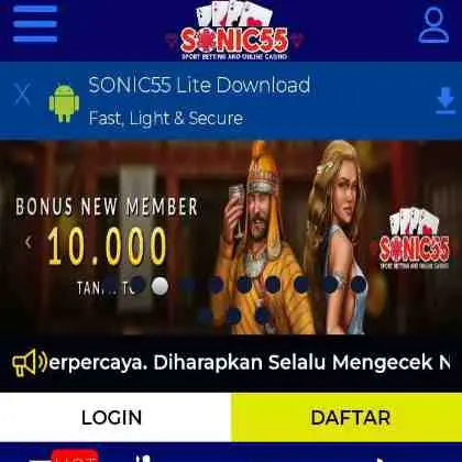 SONIC55 adalah situs judi slot gacor terpercaya di indonesia dengan koleksi provider slot game terlengkap dan permainan dengan rtp tinggi hingga 99%